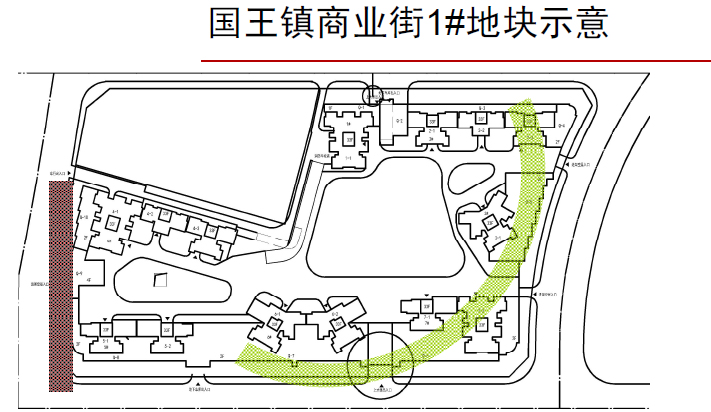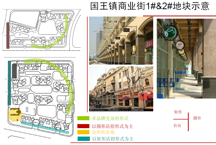 本文以國王鎮(zhèn)商業(yè)街為例,該項(xiàng)目一號地塊的面積比二號地塊略小,可以讓二號地塊來帶動(dòng)一號地塊的人氣。因此地塊的商業(yè)布局基本相同。