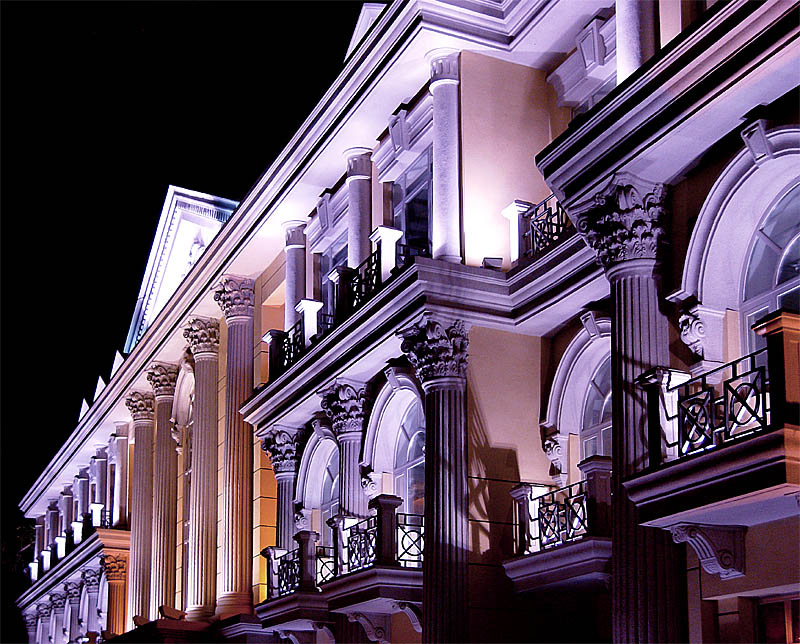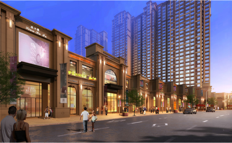 錯(cuò)落有致的商業(yè)門頭及店招很好地烘托出商業(yè)街的熱鬧氛圍,從會(huì)所向后面的熱鬧的氣氛逐漸上升,是打造不夜城的好方法。
