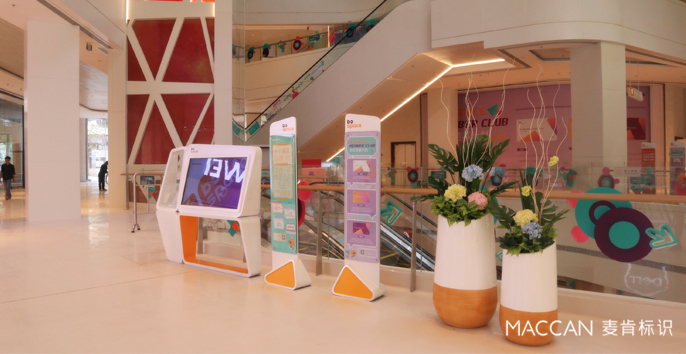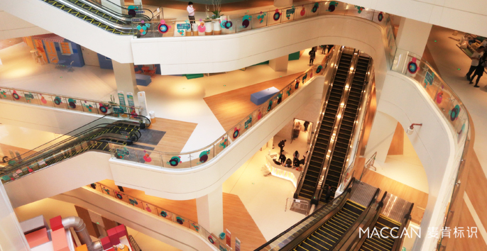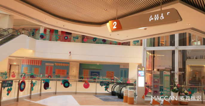 麥肯利用導(dǎo)視信息的碎片平面和合理分配,增加簡(jiǎn)潔時(shí)尚的設(shè)計(jì)圖案,將整個(gè)區(qū)域打造成了休閑放松、愜意漫步的購(gòu)物空間,極大滿(mǎn)足了消費(fèi)者的心理。