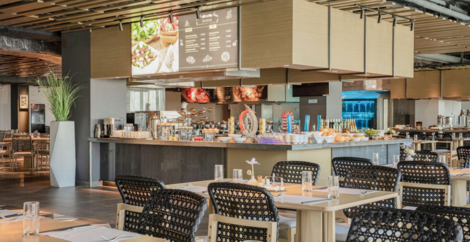 酒店大廳、自助辦理、云尚餐廳、健身房、泳池、網(wǎng)紅平臺等空間通過標識導視牌都與酒店建筑保持了充分聯(lián)系,為不同類型的活動賦予了靈活而開放的動態(tài)體驗。訪客們可以在不同的空間中自由漫步和探索,讓好奇心得到充分滿足。