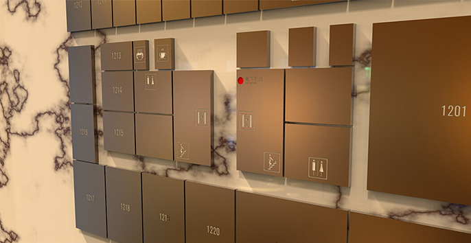麥肯設(shè)計方案的出發(fā)點注重與空間環(huán)境的緊密結(jié)合度,在簡約的標識設(shè)計靈感下,充分考慮周大福大廈空間的屬性和使用人群,并結(jié)合室內(nèi)裝飾特點進行提取糅合,從而通過標識設(shè)計更好地展現(xiàn)出環(huán)境空間的裝飾性以及集團品牌系統(tǒng)的強大性和品質(zhì)感。